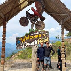 Nous voilà déposés au centre sur une grande avenue, encore 30 min à pied à pousser nos vélos, pas le choix. La circulation est folle, il n’y a pas trop de règles de la route ici. On se faufile entre les très nombreux piétons et les très nombreuses voitures. On monte les 18% à pied et on est pas mécontent au final parce qu’en vélo avec la circulation ça aurait été impossible.