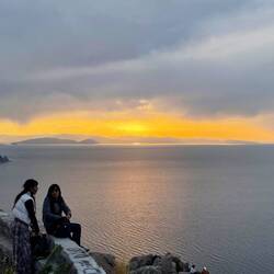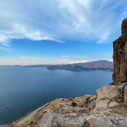 De retour au camping, prêt à partir, on profite d’une dernière glace car on avait pas eu notre dessert ☺️. On rebrousse chemin par rapport à hier, jusqu’à la frontière. Avant de bifurquer sur la droite, vers le nord du lac. La route est toute droite mais sympa car on longe le lac et on y croise des petits villages de pêcheurs. On voit que le relief est bcp plus faible qu’avant LaPaz car l’on croise plus de boliviens, pas forcément en force de l’âge, sur un vélo. A noter aussi qu’avec le retour au Pérou, on retrouve les attaques de chien. Peut être que la gentillesse des chiens est corrélée avec la gentillesse des maîtres. A voir avec le temps. Finalement à part 2-3 mini montées, on arrive rapidement au spot du jour situé à seulement 45km de Copacabana. Il est bien sympa, en hauteur de la route et du lac, on pense et on espère que le lever de soleil 🌅 demain à 4h45 sera super. On goûte tranquillement, on bronze un coup et on profite du paysage. Mais dès 17h le soleil disparaît, car oui on a perdu une heure par rapport à la Bolivie ! Alors on se fait à manger : avocat, pâtes, soupe, pain, mangue, banane! Un véritable festin !! Puis j’écris ces lignes à 18h30 on est déjà au chaud dans la tente alors que la nuit est tombée. Notre rythme va être bousculé au Pérou je le sens, mais bon c’est pas trop grave enfin de compte.