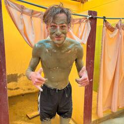 A l’arrivée c’est des bains chaud qui nous attendent 😍😍 Et c’est un PUR régal ! Ça nous réchauffe de la journée couverte sur la fin. Il est 15h et on a tout le temps de profiter c’est génial ! Pour 10 soles chacun on aura accès à 4 bains chaud en extérieur dont un vraiment vraiment chaud 🥵 40 degrés au moins. Puis on ira à la Geoterapia, un bain d’argile en gros ! Ou une mama nous tartinera avec un énorme pinceau 😂 Plutôt drôle mais le masque d’argile sur tout le corps va vraiment faire du bien ! Suivi d’un petit bain de rinçage dans une eau encore bien chaude 😋 Ensuite on file se changer et monter la tente avant la nuit.