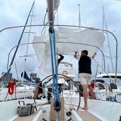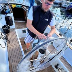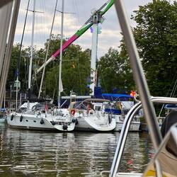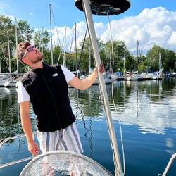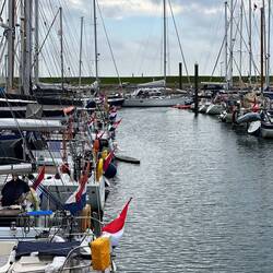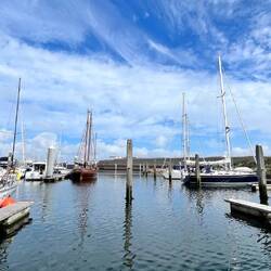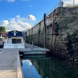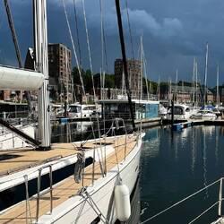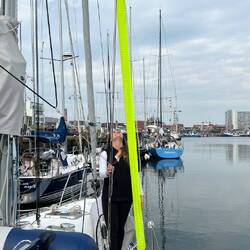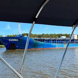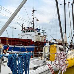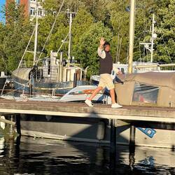 Es geht in den Nord-Ostsee-Kanal, spannend, oder?! Wir funken etwas rum und sollen noch warten bis das Containerschiff in die Schleuse gefahren ist, dann dürfen wir. Reinfahren, festmachen, jo, sitztLeer más