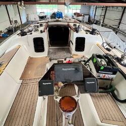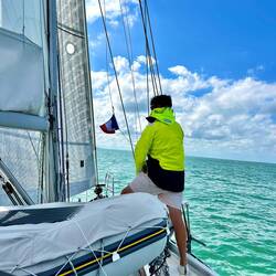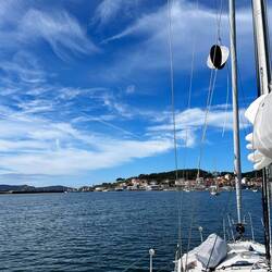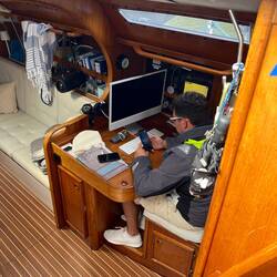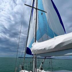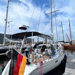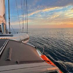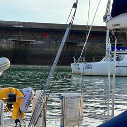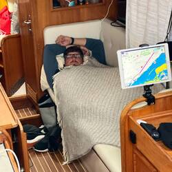 Der Gennaker ist oben. Eigentlich wollen wir Nonstop 186 Seemeilen nach Dartmouth, aber, hmmm, sollen wir abbiegen Richtung Biskaya?