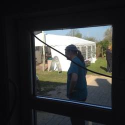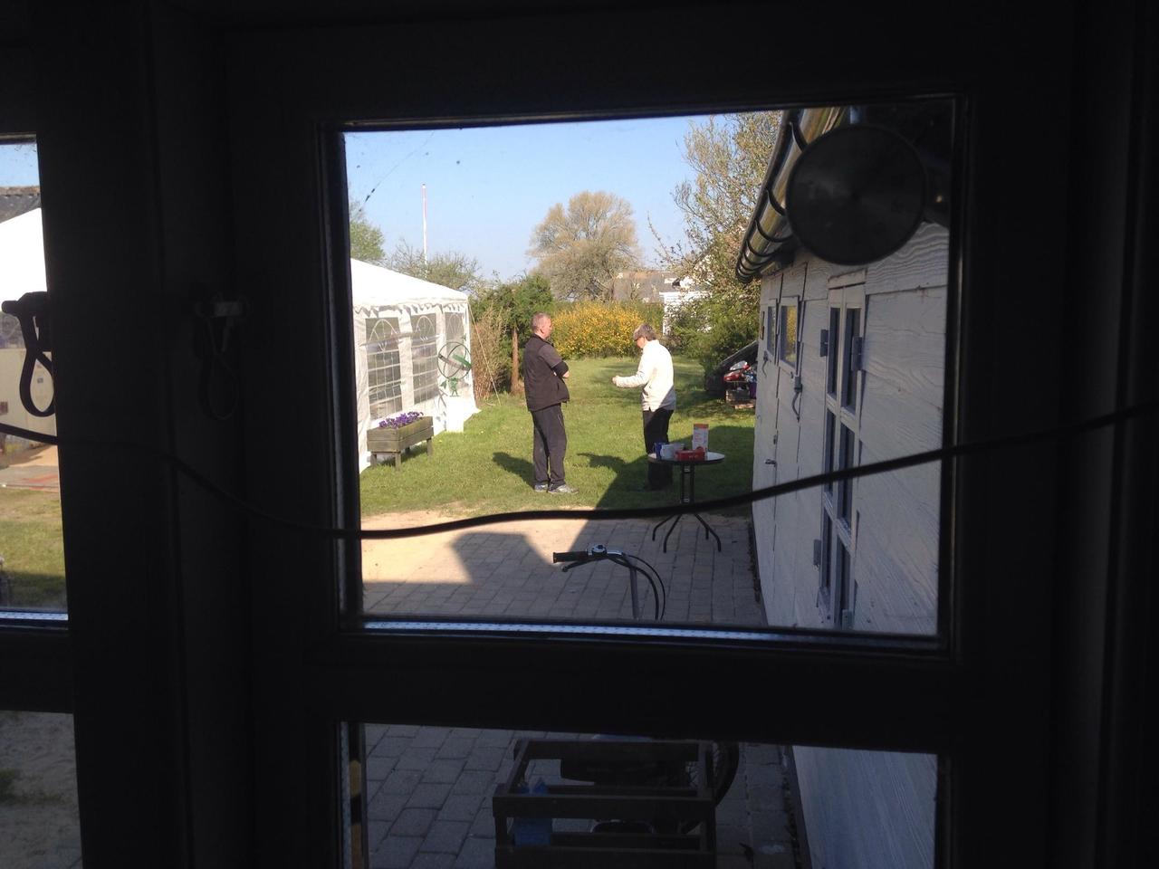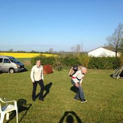 Warten auf Andreas. Er quält sich gerade aus dem Taunus mit dem Riesenwohnwagen nach Wermelskirchen.