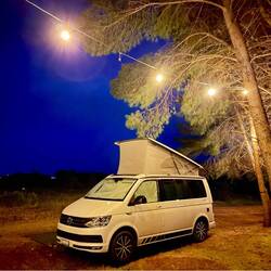 Wir zögern ein wenig mit auspacken und aufbauen, bis unser „Bulli-Zwilling“ auf den Campingplatz fährt.