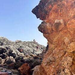 Ich bin mit den Grossen ins Wasser, während Sven an uns vorbei kam und zur Nestors Cave hoch gelaufen ist und einen Wahnsinns Ausblick genossen hat.