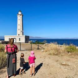 Nun schlafen wir erstmal über der Stadt mit Blick auf die Bucht zwischen Olivenhainen und Schafen.Les mer