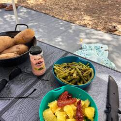 Als wir unser Provisorium aufgebaut haben, wird erstmal gegessen.