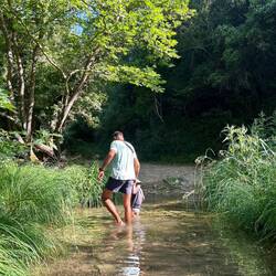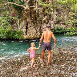 Als wir alle wieder zusammen sind, relaxen wir am Fluss. Sven geht mit den Kids ins Wasser bzw versucht es. Es ist richtig kalt. Ich geh nur mit den Beinen rein. Es brennt an den Beinen - Kneipp Tour at its Best 🤣