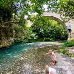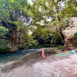 Während unserer Gespräche hat uns Assanasios noch erzählt, wo die Waschstelle der Mönche am Fluss ist. Dorthin wollen wir noch zur Abkühlung. Nach fast drei Stunden verabschieden wir uns dankbar und ehrfürchtig. Einfach sehr beeindruckend wozu Menschen im Stande sind.