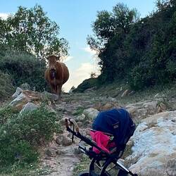 Am Anfang mit Kinderwagen und Manduca. Nach 2 Kilometern wurde der Weg zu steinig für den Kinderwagen 😬