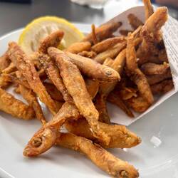 Dort war dann auch unser erste Halt. Wir haben uns mit frischen Früchten eingedeckt und dort direkt zu Mittag gegessen. Für uns gab es Tapas mit vorwiegend Fisch - geht ja kaum frischer- und die Kinder hatten Freude an Nuggets. Calamares stellten sich als Favorit beim Kleinen heraus.