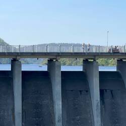 Heute gehen wir getrennte Wege. Während die Seniorinnen einen Ruhetag einlegen,und die Kinder und Enkel sich Höhlen anschauen, fahren wir zur Rappbodetalsperre in Elbingerrode.. Hier schwanken wirMeer informatie