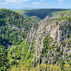 Ein Ausflug nach Thale. Wir fahren mit der Kabinenseilbahn hinauf zum Hexentanzplatz und genießen die Aussicht auf die Rosstrappe, ihr wisst schon, Brunhilde und so.