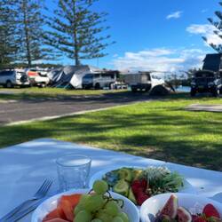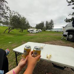 An unserem Abreisetag aus dem kleinen Ort South West Rocks waren wir auf Noras Initiative surfen - die Wellen waren wild, aber einige habe ich bekommen. Unsere Reise ging weiter nördlich (ca. 1h)Read more
