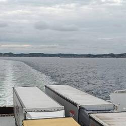 Kurze, unspektakuläre Fahrt vom Campingplatz bis nach Larvik zur Fähre Color Line. Die legt sehr pünktlich ab und wir sagen farvel Norge.🙋🏼♂️🙋🏻
