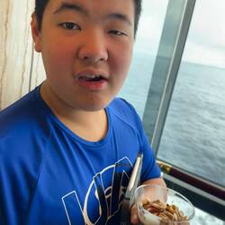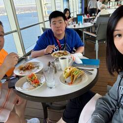 In most of the sea day, we wake up at 11am to noon, hear the daily announcement from the captain in our cabin. Then we get ready to go out for lunch. We eat either at the Main dining room or the Lido Market (buffet). After lunch, we will join some activities on the cruise: lecture, origami folding, wine tasting, afternoon tea, pedi-mani and more. We sometimes have afternoon snack at Dive-In for burgers and tacos.