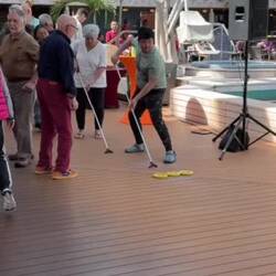 There are around 2000 passengers onboard and many of them are elderly. Our daily schedule is different than most of the people. We wake up late and sleep late. So most of the time the ship is not busy for us. Also, Paul paid an upgrade to Club Orange, so we got priority for most of the activities.