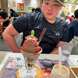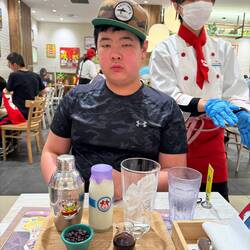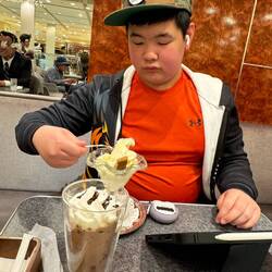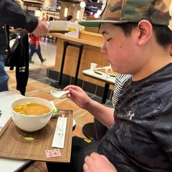 We checked-out our hotel and arrived to the Namba station by taxi. We did some shopping and lunch at Namba station. Symeon enjoyed the simple lunch.