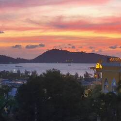 Nachdem wir am Check In Schalter, in Bangkok am Flughafen, in einer nicht enden wollenden Schlange standen, (aufgrund einer technischen Störung konnten keine Koffer aufgegeben werden), haben wir (ich) uns nach fast zwei Stunden erfolgreich vorgedrängelt. Sonst hätten wir unseren Flug nach Phuket wahrscheinlich noch verpasst. Danach ging alles ziemlich schnell. Auch unser Flug war sehr kurzweilig. Mit etwas Verspätung sind wir auf Phuket gelandet