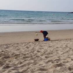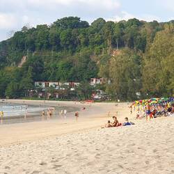 Nach einem guten Frühstück haben wir uns auf unseren Roller geschwungen und sind zum Strand von Kamala gefahren. Bis wir erst einmal an den Strand konnten, mussten wir an unzähligen Rollern vorbei.Læs mere