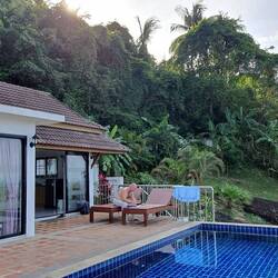 Ursprünglich war geplant, dass wir noch einen zweitägigen Aufenthalt in Bangkok machen. Da wir uns beide aber in Bangkok nicht so wohl gefühlt haben, sind wir direkt von Chiang Mai nach Koh Samui geflogen. Und nun seit gestern in unserer "Villa Myna" am Berg. Der Berg, den wir bezwingen müssen, ist so steil, dass ich jedes Mal aussteigen muss, damit unser Auto (Toyota Yaris) überhaupt den Berg schafft. 🫣 🤣