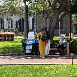 A beautiful church and a woman and her family whom I met. She lives in the Andes Mountains and travels by bus all night to get there and sell products in the park during this time of year, when it is cold in the mountains. I bought some things from her- a wonderful opportunity to learn more about her and meet her beautiful family.
