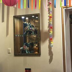 The artist was not a native Spanish speaker. The word in Spanish for flame is “llama” in Peru. The word “llama” also has other meanings depending on context. One such meaning is the famous animal of Peru, the “llama” 🦙 .