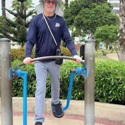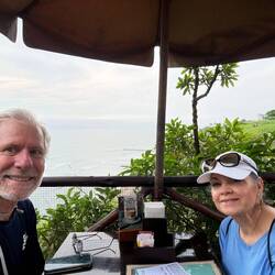 At one point Mike and I found some exercise equipment along the path and took the opportunity to try the exercise- was fun! We also each got an ice cream-Maracuyá flavor and Mike got passion fruit milk based with chocolate. We ended up at the Buena Vista Café and had our coffee and tea overlooking the ocean. The temperature was perfect.