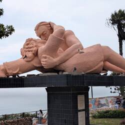 So when the completed monument arrived, it was a woman with a tiny llama 🦙 (the animal) on her head.