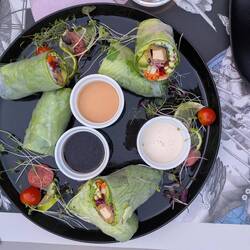 We ordered the “Soul in Spring” and “Green Paradise” roll. We also had had a carrot cake which was divine, and they gave us corn cutlets on the house to sample! They did not disappoint- delicious!Baca selengkapnya