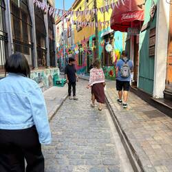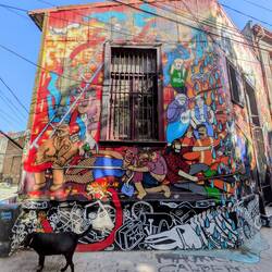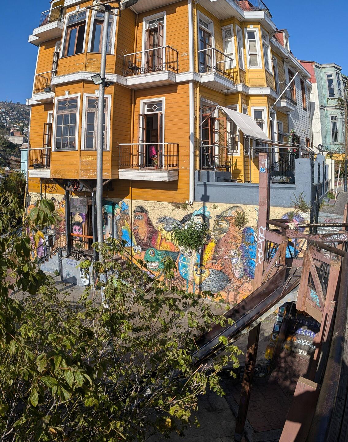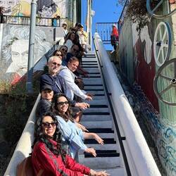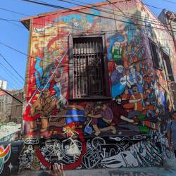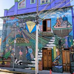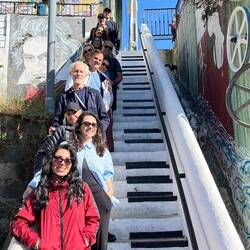 What a wonderful day to learn about these two cities! Valparaiso is high up in the hills, and is known as a bohemian, artsy area. The town was not planned and rather than restructure the hills, they adapted their homes and businesses to the land. There were originally 40 elevators throughout the town, and now there are approximately 13 still in operation and in use today! In fact, we took one up forty meters to enter into the town. There are a lot of beautiful murals, and expressive art based on the history, or just plain old fun.
