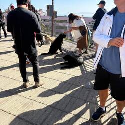 This was a fabulous walk, along the cliffs overlooking the ocean. Full of activity, people walking, playing tennis, taking an outdoor self defense class, sleeping under a tree, or simply getting an ice cream sold by a vendor. One person was testing the winds for paragliders off in the distance, while surfers were below.