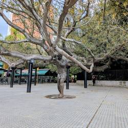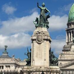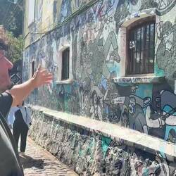 The city of San Telmo, was founded in 1871. You will see the monument has a woman in the background, with her hands outstretched to the heavens- it represents a nod to the struggles of the indigenous peoples in Buenos Aires and Argentina throughout the colonization period. He pointed out a red faint outline on one side of her breast in the crevice, which is red paint, the people threw there intentionally, to not only acknowledge these struggles of the indigenous peoples, but the blood spilled.