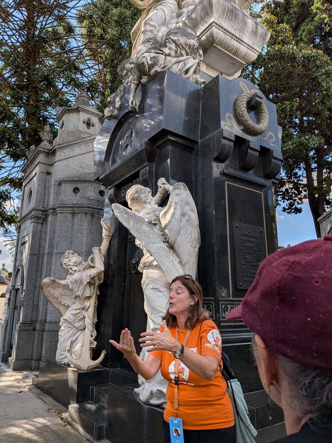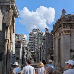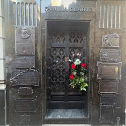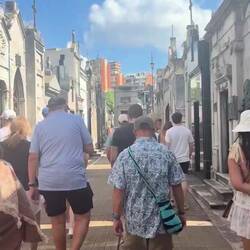 Guided tour through mausoleum, several interesting ones with stories and differing architecture- towards end of tour we saw the mausoleum of Evita Perón and her family (the Familua de Duarte). There is quite a story about how her body came to rest there, when a dictator had her body moved and years later it was brought back.Baca selengkapnya