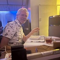 Here’s a few photos. Michael told the flight attendant, you’ll have to show us how to expand the table, we are rookies!