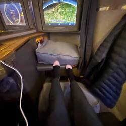 Totally reclining seats to sleep, meals, snacks, access to movies, music and more. Quick access to the bathroom, literally two steps from my seat, and we were first off the plane both times!