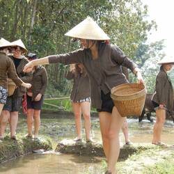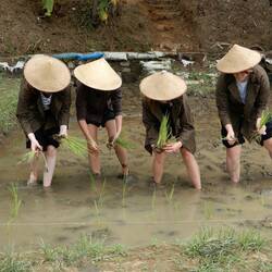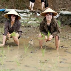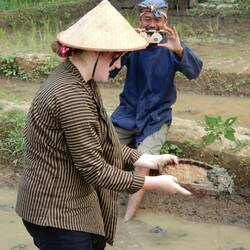 Well it was much more than rice planting! First we dressed in traditional tops and hats. We were then allocated jobs to do before we walked in a procession to the beat of a drum to the rice paddyRead more