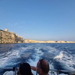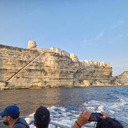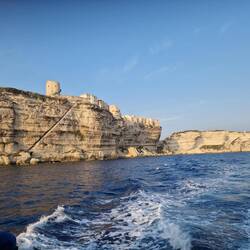 Ab nach Bonifacio, früe am morge d Stäge vom König Aragon erklimme und d Altstadt vo obe aaluege und am Abig mitm Boot d Stadt vo unne aaluege