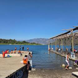 Zu dritt gehts auf die Töfftour um den Lake Atitlan. Mit obligatem Streetfood und leckerem, üppigem Frühstück.