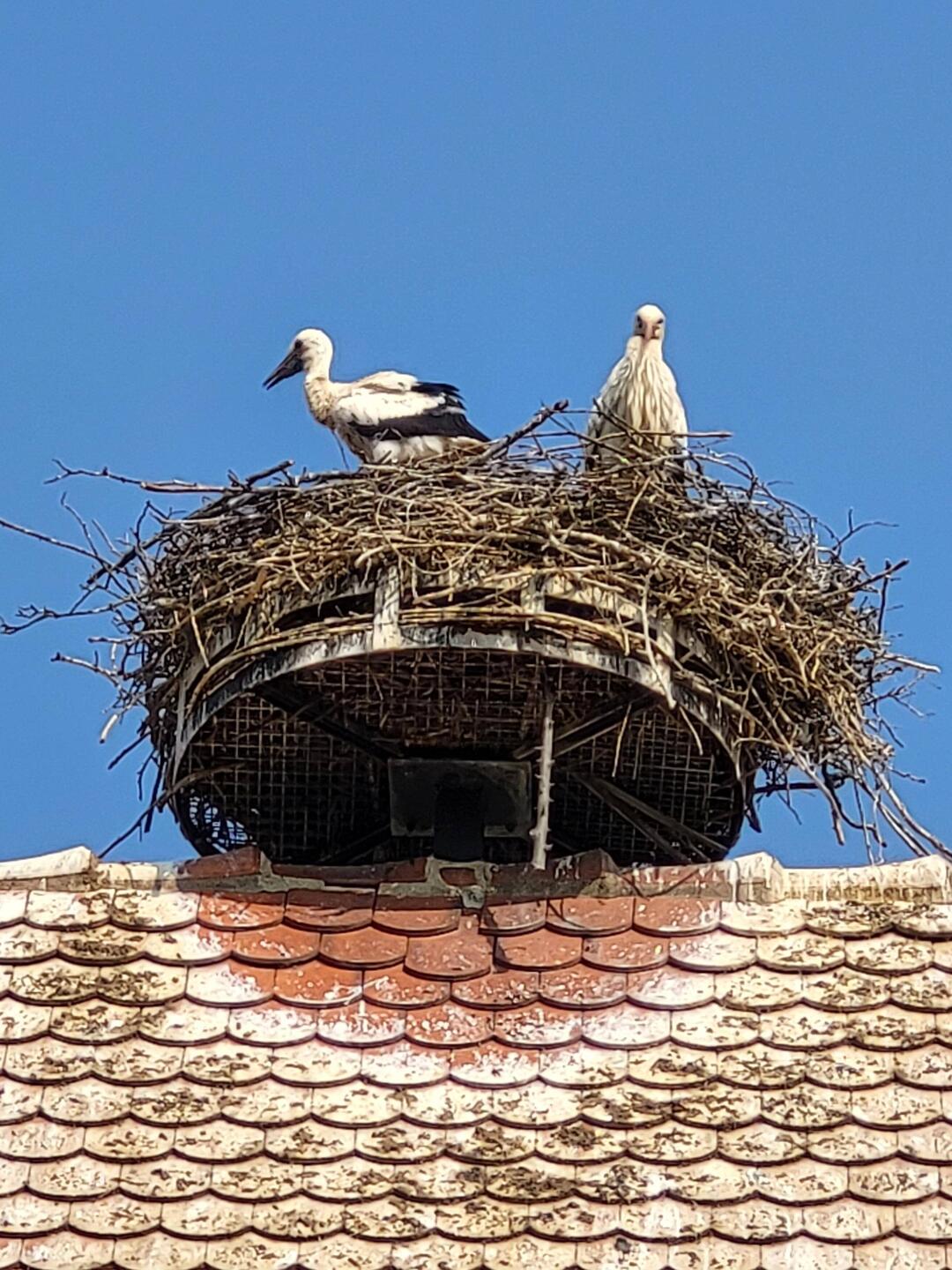 Übernachtung auf dem Camping Municipal mit Storchennest.