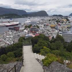 Dann ging es weiter nach Alesund, bisher für uns, die schönste Stadt, sind die 416 Stufen hoch auf den Aksla Viewpoint Alesund.