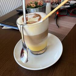 Es ist 9.30 Uhr und wir sitzen schon mit dem 1. Sekt/Milchkaffee im Restaurant… das Sektglas ist so süß, dass könnte auch ein Schnapsglas sein! Da bekommt der Satz „ich hatte schon 3 Gläser Sekt“ eine neue Bedeutung 🤣🤣🤣
