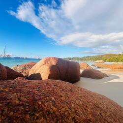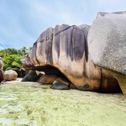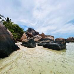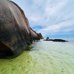 Ce matin direction anse source d argent . C est beau mais très nuageux aujourd’hui. La couleur de l’eau est différente mais sympa tout de même , avec les gros rochers . Très réputés auxRead more