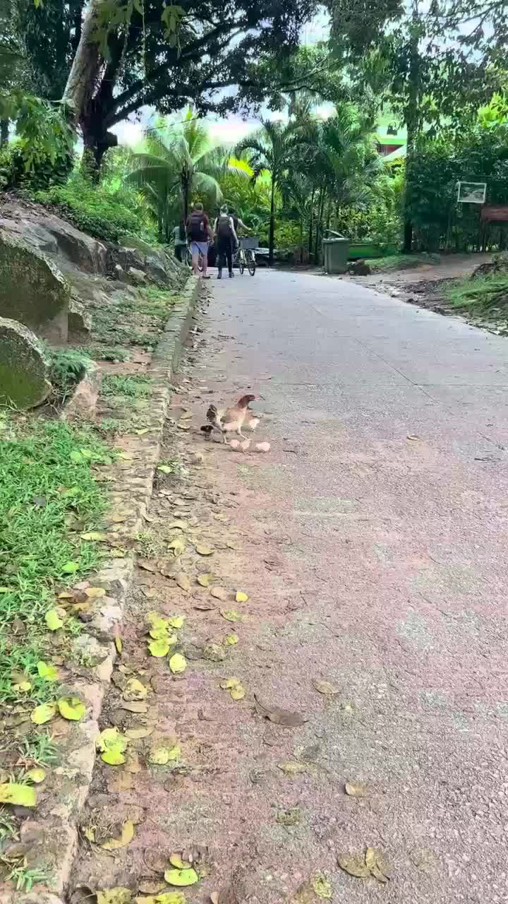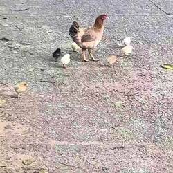 La poule qui traverse avec ses poussins