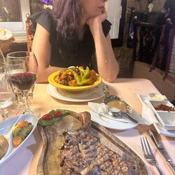 Après avoir roulé et chercher pendant des heures , nous avons pu trouver le restaurant de krimou dans le village de Jemmel. Beaucoup d émotions . Nous avons été reçues comme des princesses avecLeggi altro
