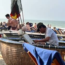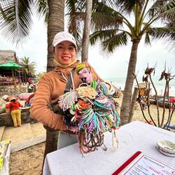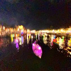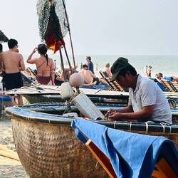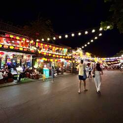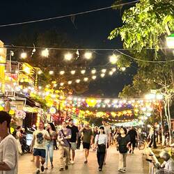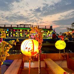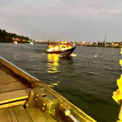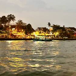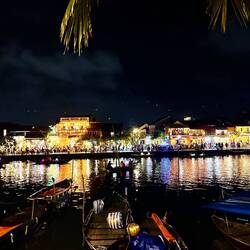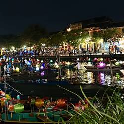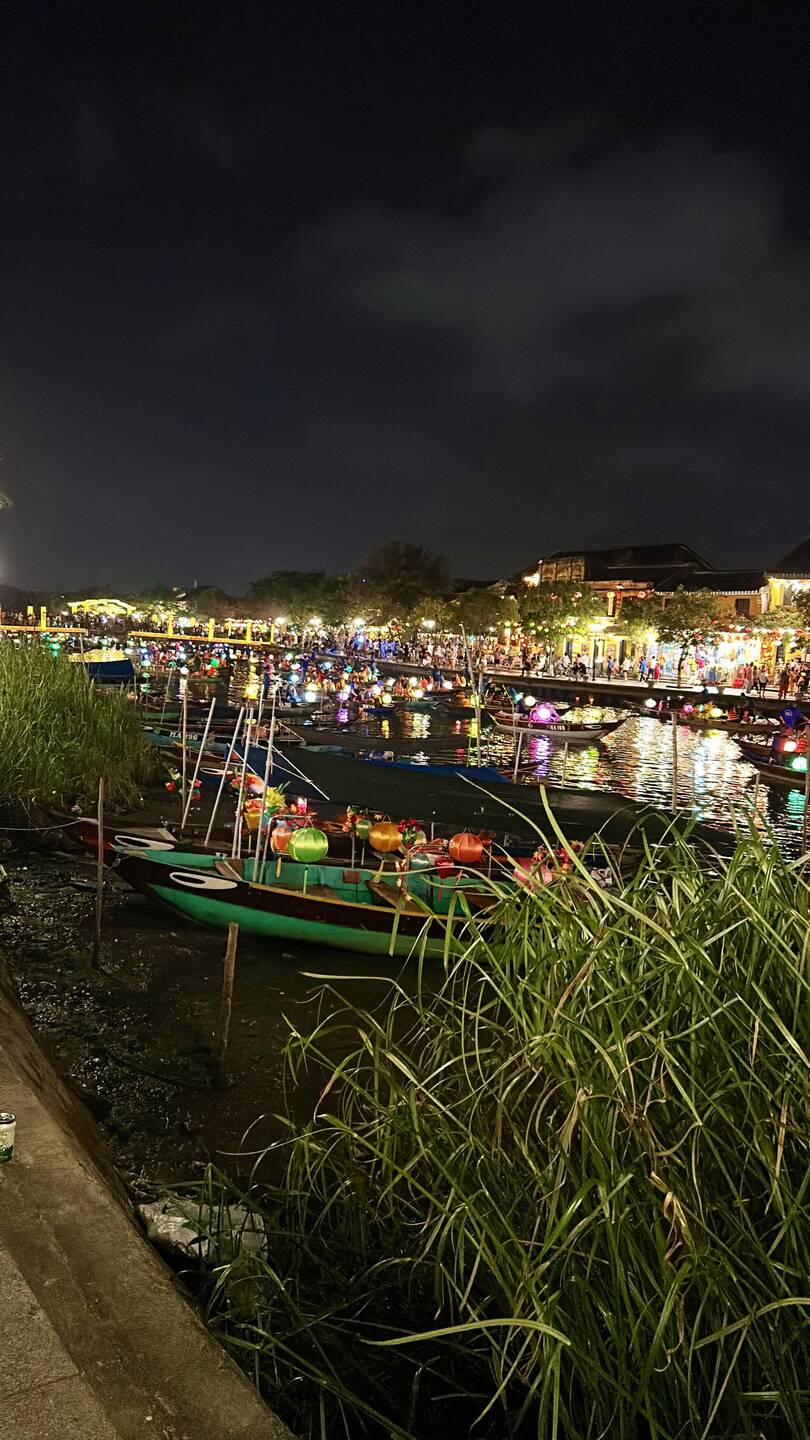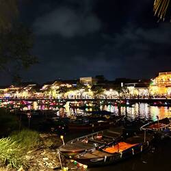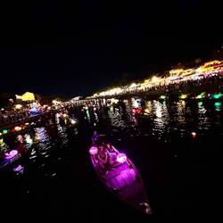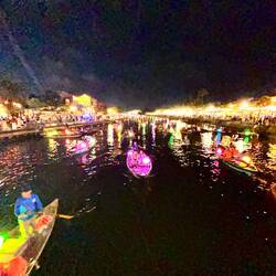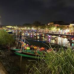 Aujourd’hui matinée plage jusqu’à 16 h . J y suis allée en vélo . Il y avait beaucoup de monde, toutes les minutes des marchands ambulants tente de vendre des bijoux, de la nourriture c est difficile car je sais qu ils ont besoin d argent et je ne peux contenter tout le monde . J ai trouvé la technique au lieu de répondre en anglais, ce qui est plus simple pour eux , je parle français et là on me laisse tranquille. Après je suis allée dans la ville . J ai arpenté les rues interminables. J ai appris ce matin que la tradition vietnamienne est de faire brûler une bougie pour les défunts . J ai donc été faire un tour de barque . C était splendide avec toutes les couleurs des lampions . J adore cette ville pour la féerie crée par les lumières . Puis j ai donc brûler deux bougies . Une pour mon mari et une pour ma maman . C était assez émouvant j en ai même pleuré ..