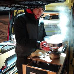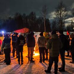 Erster Abend in Ivalo, Finnland im Arctic River Resort, alle haben draussen übernachtet und unsere Chinesenheizung hat auch funktioniert.