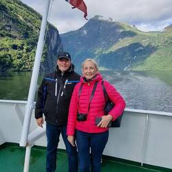 Mit der Fähre ging es dann durch den Fjord zum Ort Geiranger. Es waren wunderschöne Eindrücke während der Fahrt durch den Fjord!!