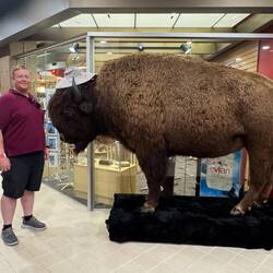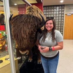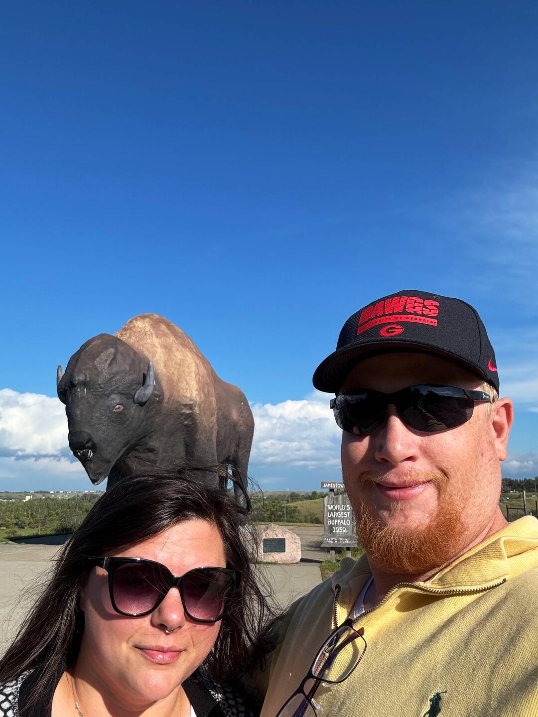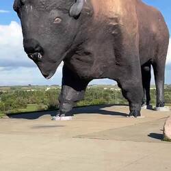 Welcome to the worlds largest buffalo. Sadly the smaller ones were roaming and Amber could t make new friends.