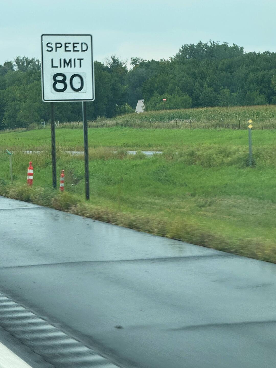 The speed limit jumped from 55 to 80 and Grandma floored it