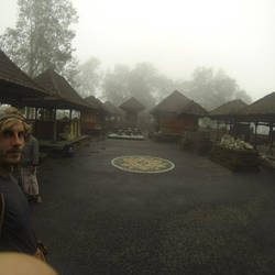 Mein Ziel war eingegeben, es sollte zu einen der höchsten Tempel Balis gehen, zum Pura Puncak Penulisan. Dieser liegt auf der gleichen Höhe wie der heutige bestiegene Vulkan. Ich weiß nicht was das für ein Weg sein sollte aber dies war er sicher nicht, was Google mir da vorschlug. Ich fuhr durch das Hinterland von Bali und die Straße war ein Feldweg, aus welchen überall Steine hinausschauten und das nicht nur einen Zentimeter. Ich würde denken, dass ich auch durch die Armenviertel hindurchfuhr und kam am ersten Aufstieg an. Da die Straße schlimmer wurde und der Anstieg zunahm, würde ich denken, dass selbst Geländewagen es nicht leicht gehabt hätten. Mein Gewicht reichte schließlich nicht mehr aus und der Schlupf zwischen meinen Hinterrad und der Straße war zu groß. Folglich hieß es absteigen und neben dem Roller herlaufen. Endlich erreichte ich wieder die richtige Straße und konnte den Ausblick genießen und mich wieder schneller meinem Ziel nähern. Bereits da wusste ich, morgen bleibst du zu Hause und genießt einen Tag in der Villa. Ich traf meine Wolken auf entsprechender Höhe wieder und wusste das ich keine gute Sicht haben würde. Das war mir vorher klar aber ich wollte nicht wegen dem Tempel abermals in die Ecke Balis fahren. Dort angekommen warf ich mir meinen Sarong um und ging die etwas über zweihundert Stufen nach oben. Auf dem Weg gingen immer wieder Plattformen ab, welche von Balinesen wieder neu aufgebaut wurden.Oben am Tempel angelangt, war dieser eher klein und war rundherum in Wolken gehüllt. Ich sprach mit einem Balinesen, welcher gerade zum Beten hergekommen war und ging danach meine Runde. Der Tempel war somit in wenigen Minuten erkundet.